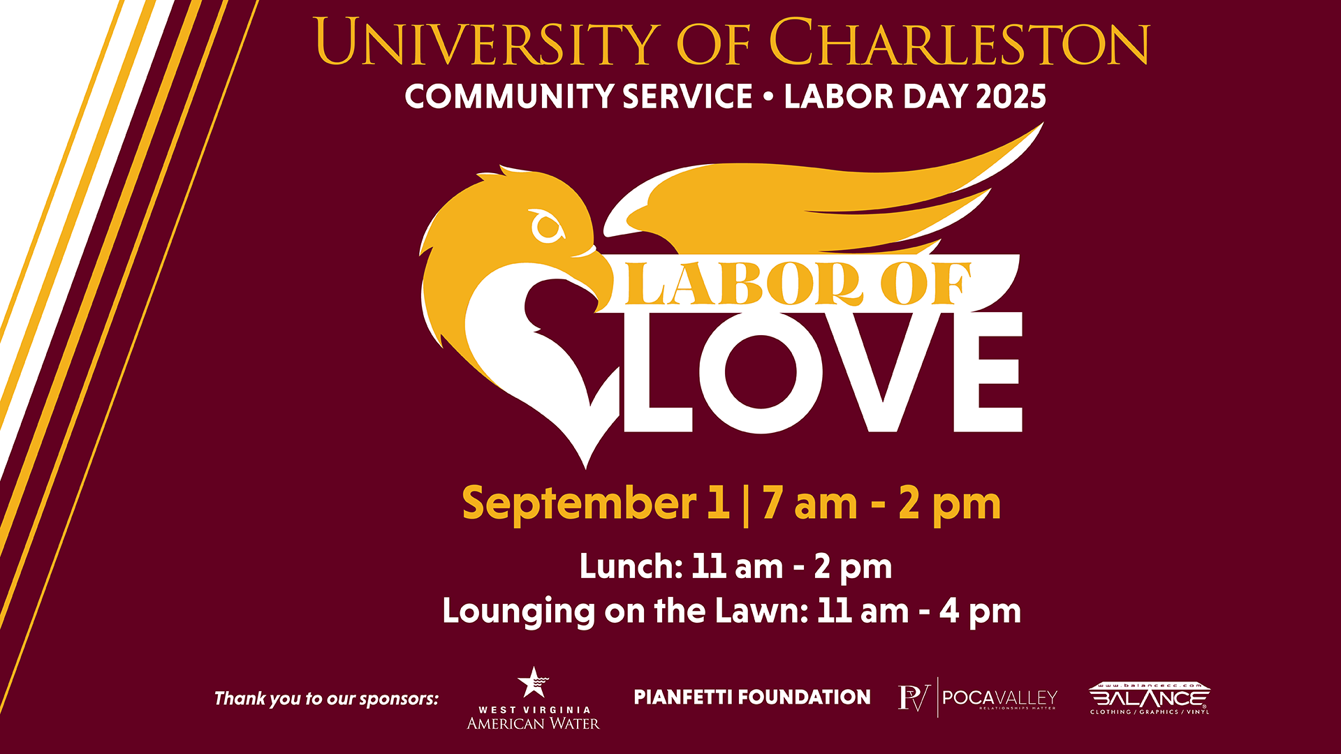 Sponsors for the day of service include WV American Water, Pianfetti Foundation, Poca Valley Bank, and Balance Clothing Company.