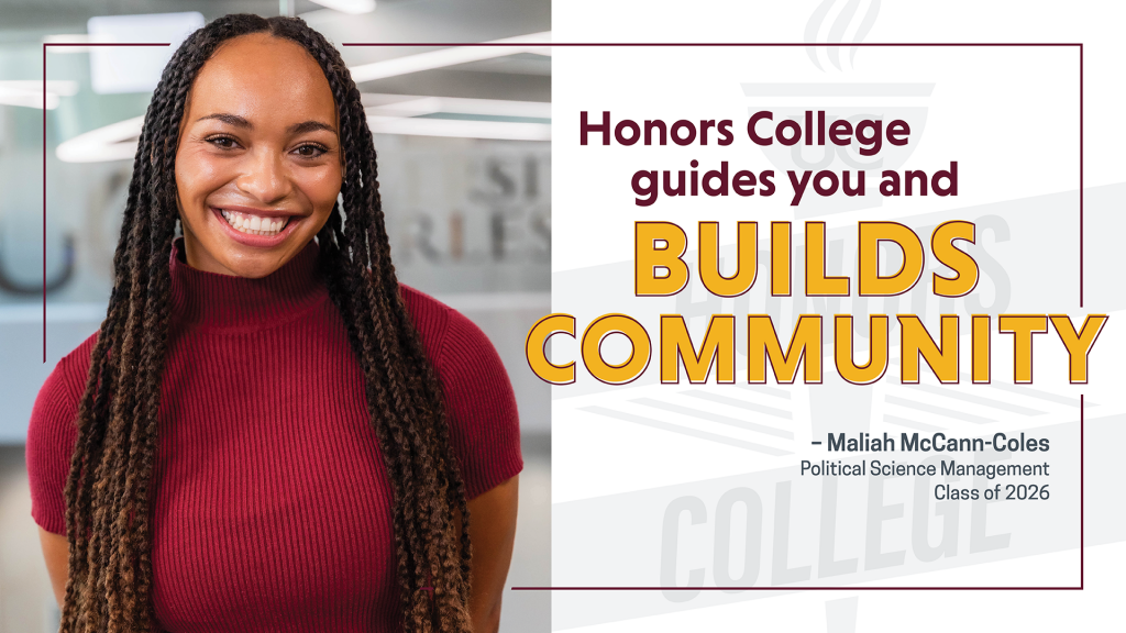 The Honors College is an unduplicated experiential space for select students from all majors with unique interests, talents, passion, and vision. We are a community of high-achieving and intellectually curious students who enter the university with evidence of exemplary high school or collegiate achievement.